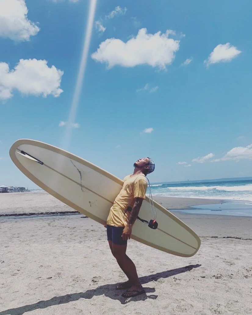 我想是蜜月灣的顧爸,他是我看過最熱愛海的人,無論有沒有浪,他都可以在海邊待上一整天,他也是我的衝浪啟蒙老師,看他衝浪輕鬆,激起了我想學好衝浪的念頭。另外我也很喜歡去探討衝浪品牌背後蘊含的文化,例如影響我最深的應該是DEUS,他們建立了一個Surf lifestyle,使我理解原來surfer的生活並不只有衝浪,還有騎車、爬山、露營,任何與大自然共享的活動組建起了專屬衝浪的Surf lifestyle。