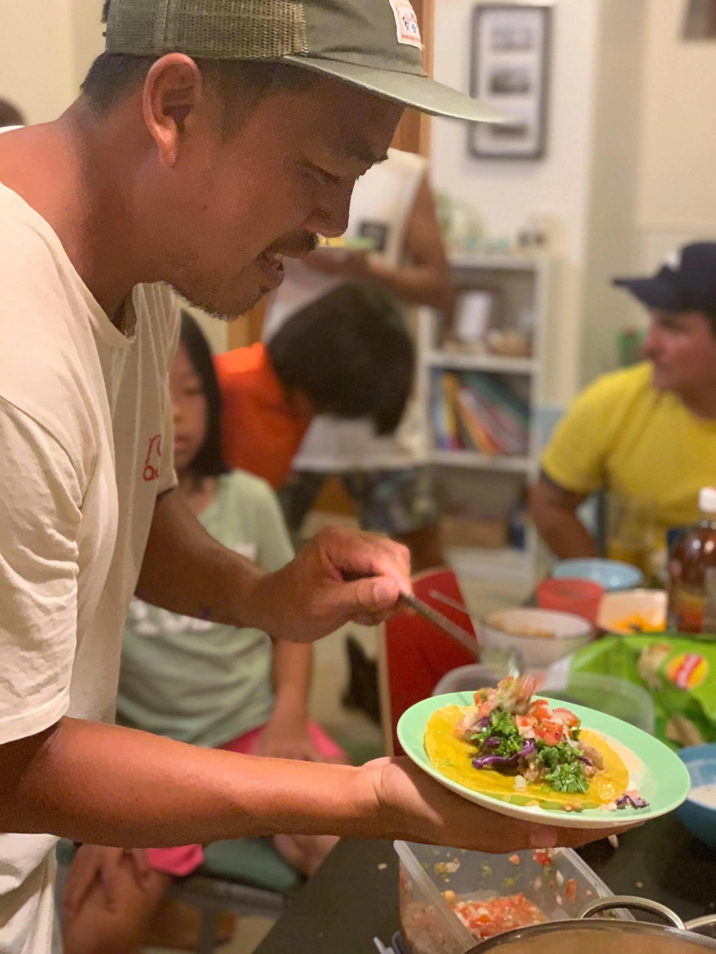 教我做Taco的是加州人Chris,自從開始這個計畫後,每周二就是Taco Tuesday,我們會做不同的口味讓朋友試吃,從而找出最多人喜歡的口味。Chris算是引我入門的師傅,教了我許多基本Taco的口味,但我覺得一定要做出獨特的味道,而台灣普遍比較喜歡吃有湯汁的食品,所以我專攻「手撕豬」這個口味,後來便以燉肉及自製的佐料,完成了現在大家所看到的Taco。